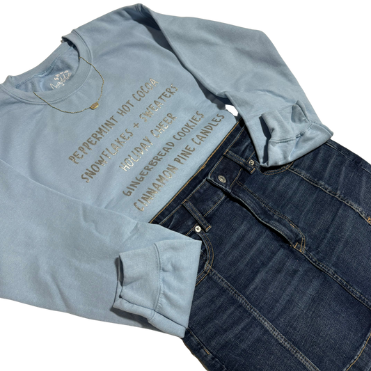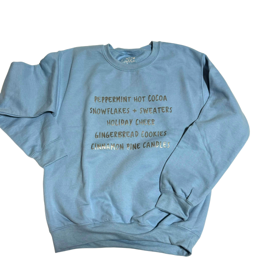 Beautiful navy blue crew with metallic gold ink . Nothing is wrong with the crew just like Maddie said, it’s just a lighter design than what she envisioned. I bought two for holiday gifts! 10/10 recommend anything from Maddie Green Boutique. Fast shipping, fun packaging on MGTV and excellent customer service.