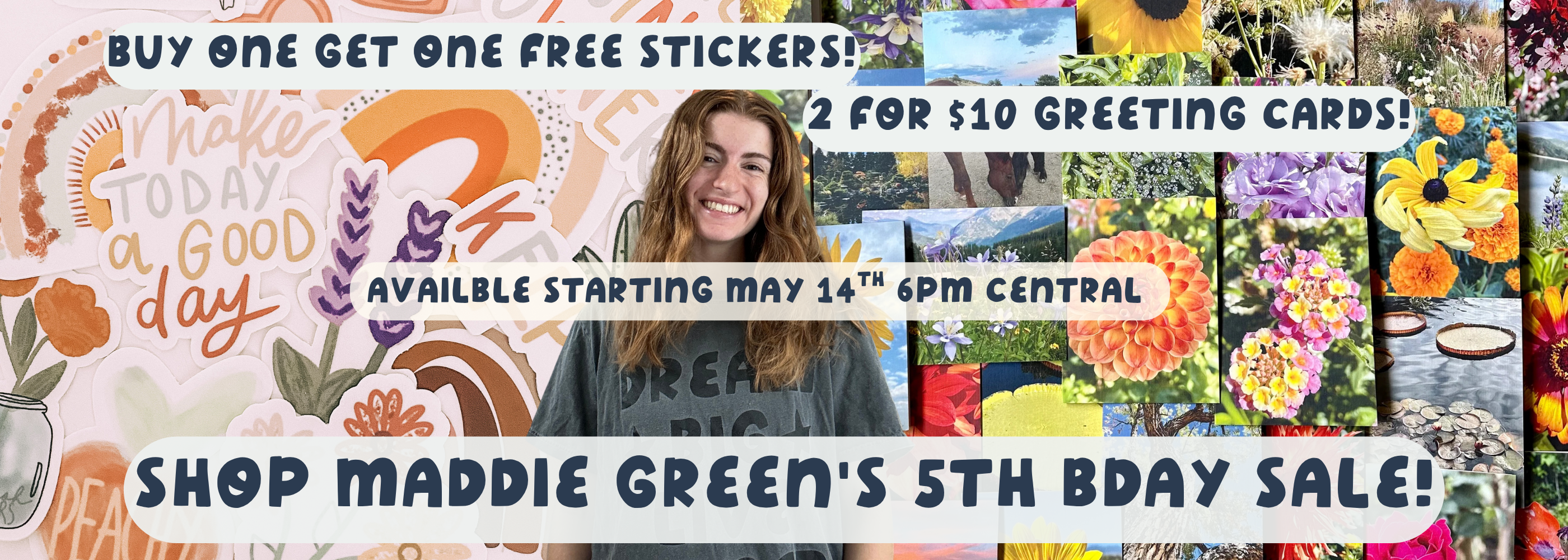 In 2020, Maddie started going live from her parents’ basement to pack orders, sketch new designs, and connect with early customers. Those lives quickly turned into MGTV (Maddie Green TV) a place where thousands now tune in on TikTok to relax, get inspired, or just hang out with a friend on the other side of the screen. Whether you’re shopping for your next favorite tee, adding joy to your desk with a new notebook, or just need a little pick-me-up you’re not just part of a store here. You’re part of something real.