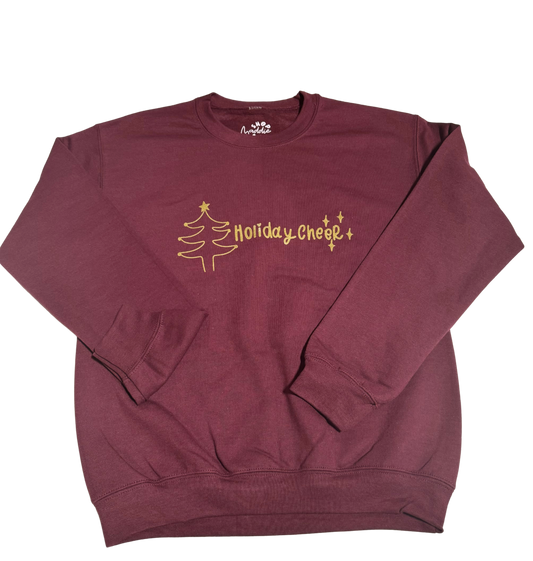 Holiday Cheer Maroon Red Purple Gold Metallic Crewneck Sweatshirt