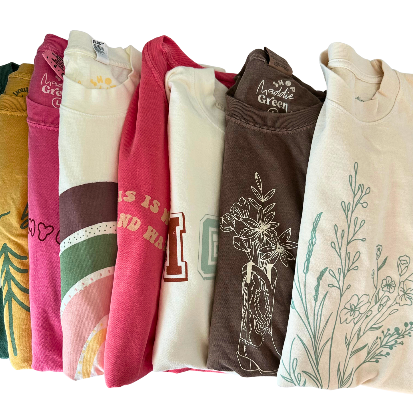 Shop Maddie Green is a women-founded, family-run online boutique that started in Maddie's parents basement in 2020. She launched the business while working retail at the mall, just as the world was shutting down. What began as hand-cut stickers and Etsy order has grown into our full on uplifting boutique!