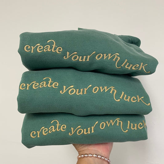 Green Create Your Own Luck Comfort Luxe Embroidered Crewneck Sweatshirt