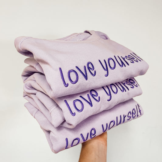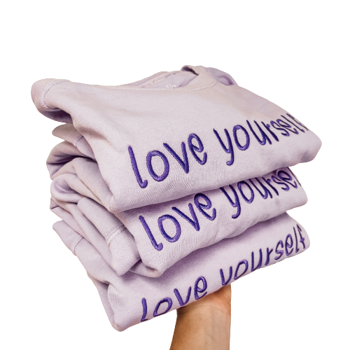 Gentle Cloud Grey Monochromatic Embroidered Love Yourself Hoodie