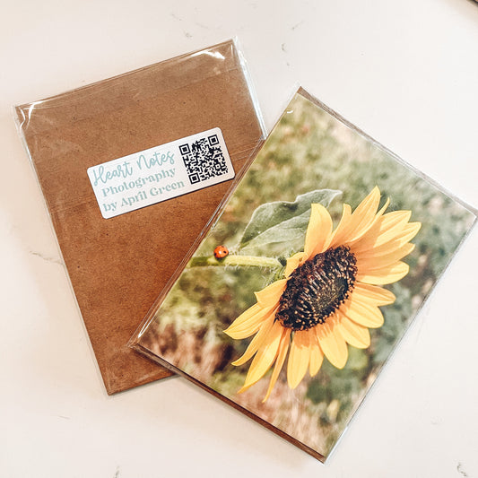 Sunflower Lucky Ladybug Greeting Card With Kraft Envelope