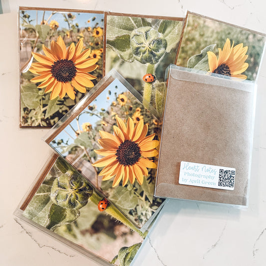 Sunflowers Set of 6 Greeting Cards With Kraft or White Envelopes