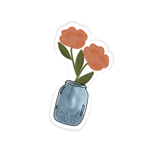 Mason Jar Orange Flower Waterproof Vinyl Sticker