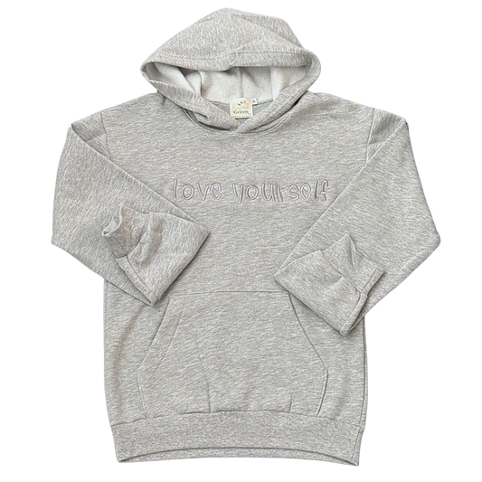 Gentle Cloud Grey Monochromatic Embroidered Love Yourself Hoodie