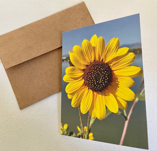 Windy Sunflower Photography Greeting Card With Kraft Envelope
