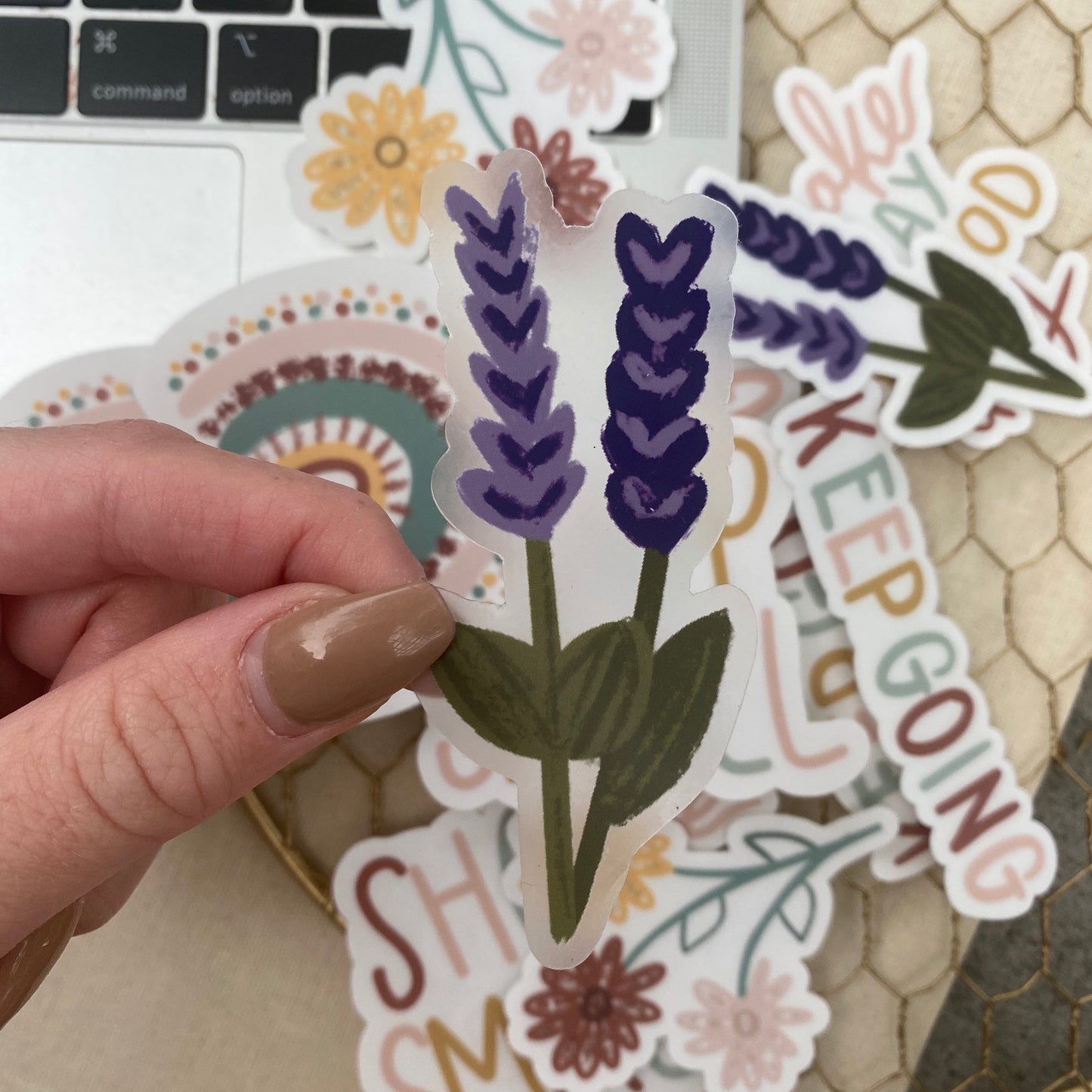 CLEAR Lavender Floral Waterproof Vinyl Sticker