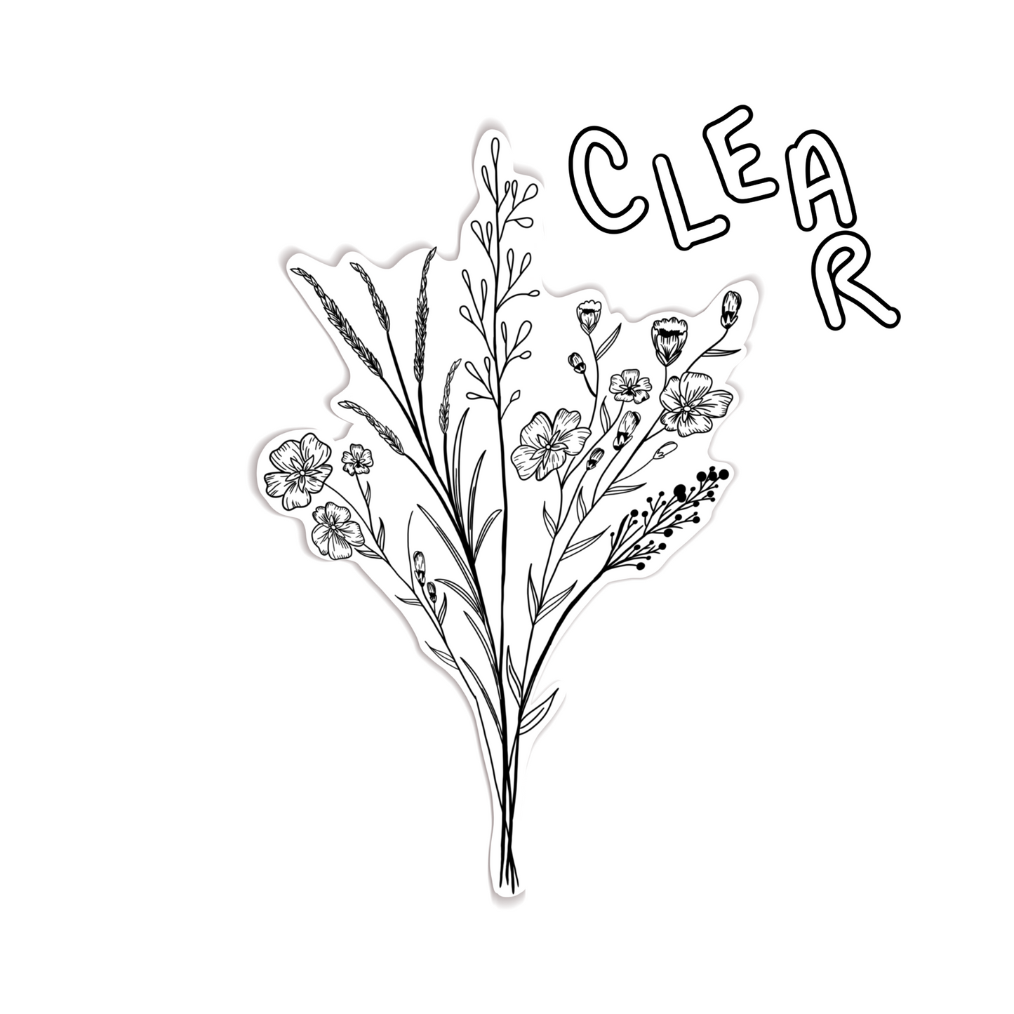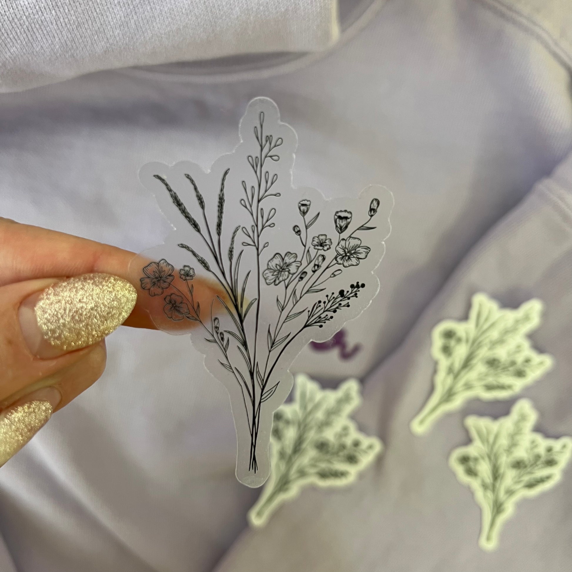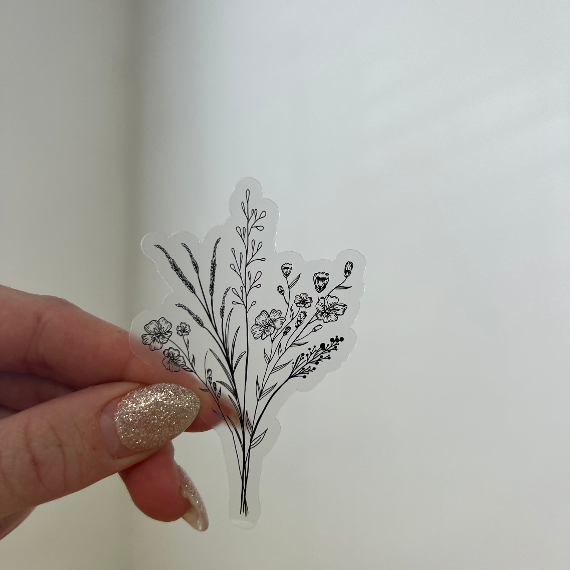CLEAR Black Wildflower Waterproof Vinyl Sticker