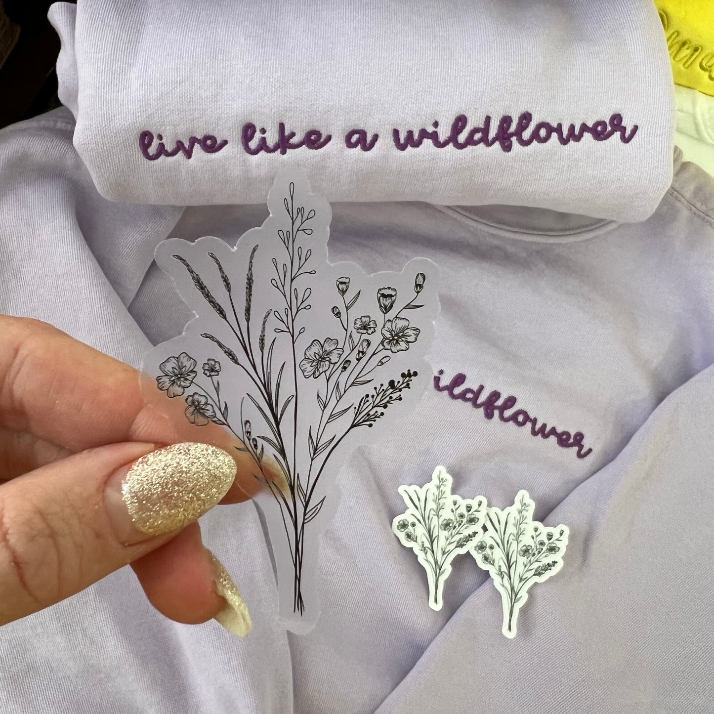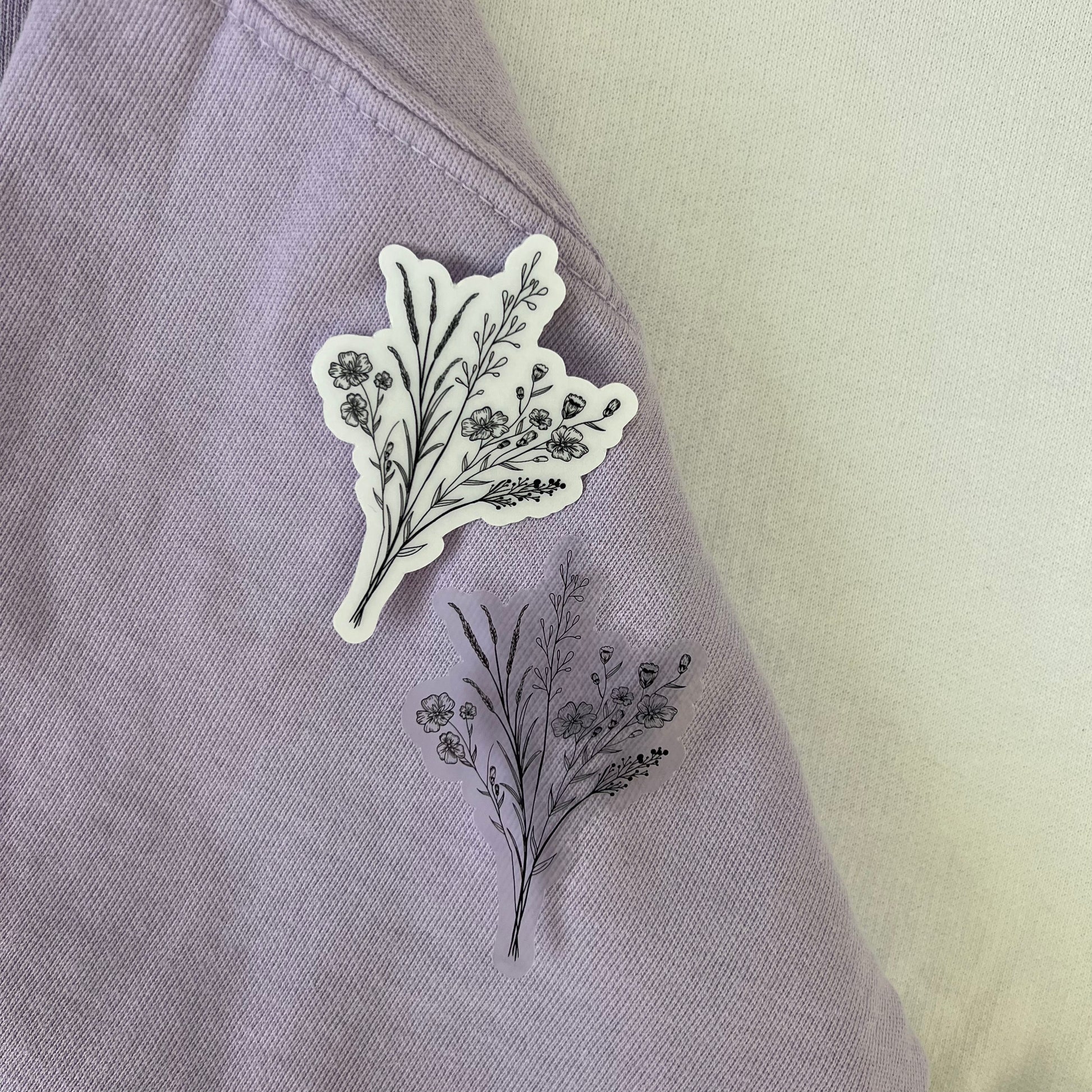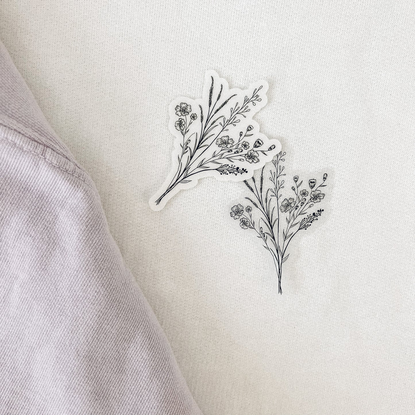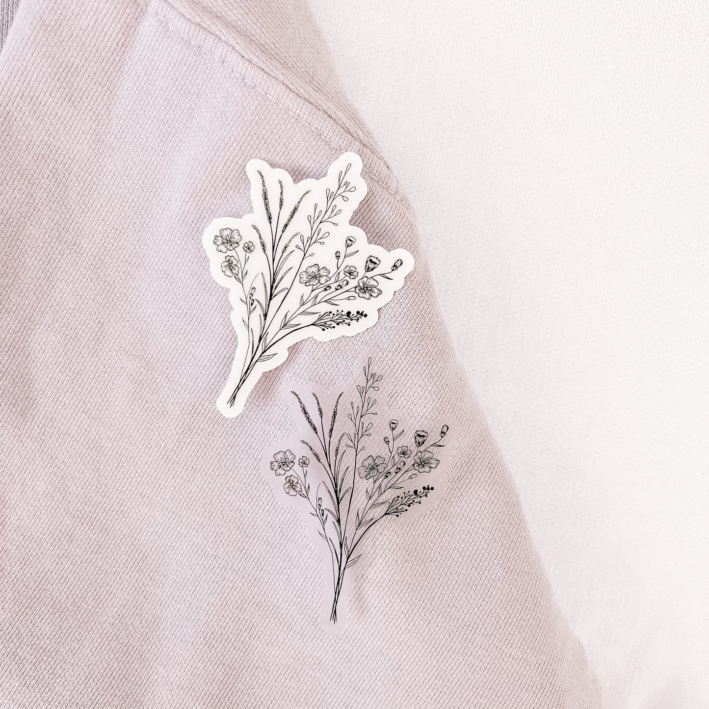 CLEAR Black Wildflower Waterproof Vinyl Sticker