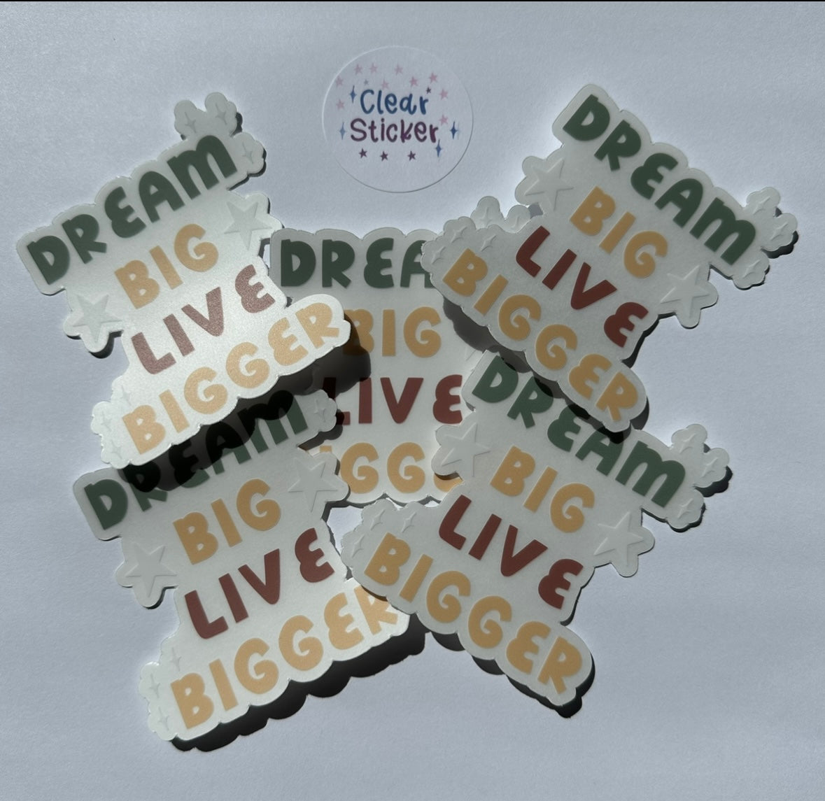 Clear Dream Big Live Bigger Waterproof Vinyl Sticker
