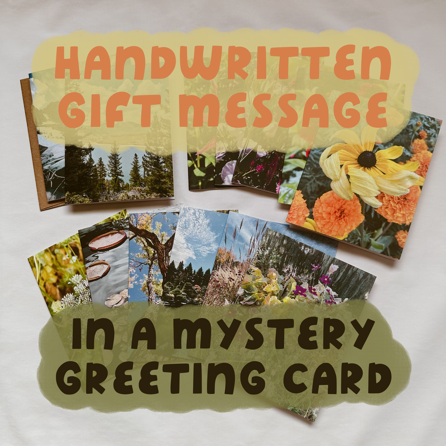 Cards are typically blank for you to create your note, but this listing comes with a HAND WRITTEN gift message! Leave your gift message in the order notes section!