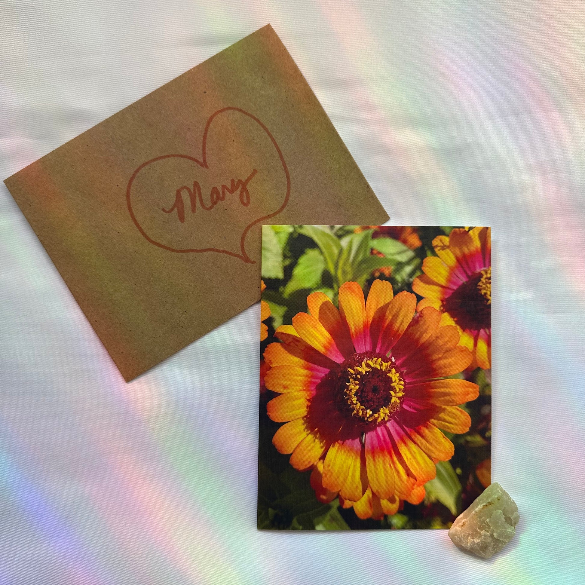 Vibrant original photography professionally printed on a premium luxurious linen or matte finish 4.25" x 5.5" greeting card. Complementary Kraft self-sealing envelope included. All photography is original from the one and only Mama Green!