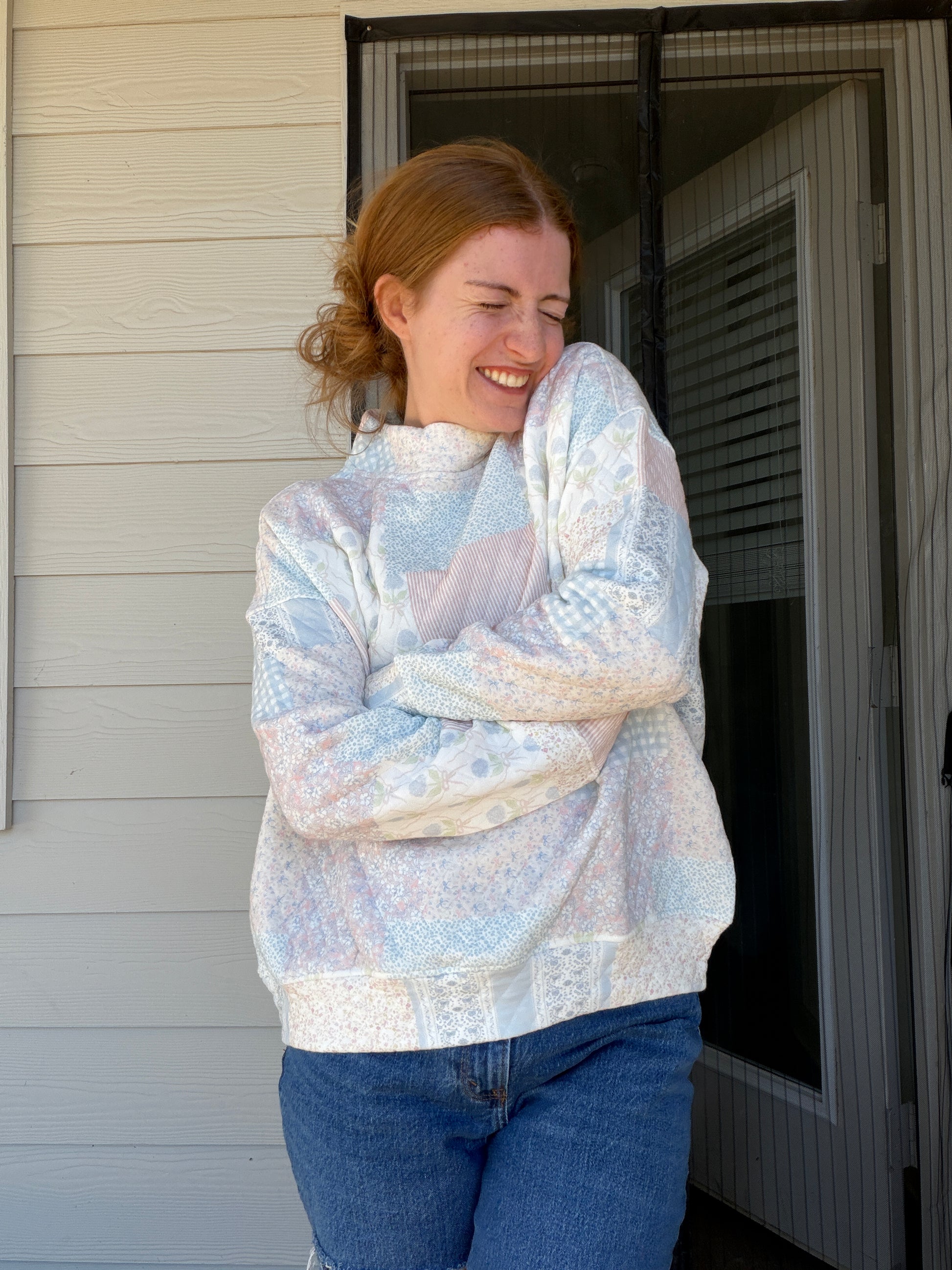 - Inside is NOT fuzzy, and feels lightweight and like a quilted blanket material!
